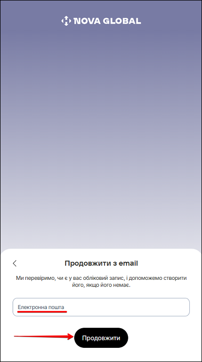 При першій реєстрації потрібно вибрати країну та мову. Якщо погодилися з умовами, та поставили позначку у чек боксі — відкриється сторінка з вибором країни та мови. Натисніть поле з назвою країни.