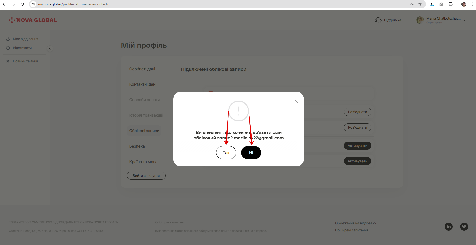 У випадаючому вікні підтвердіть свій вибір — натисніть кнопки (Так/Ні), відповідно дії.