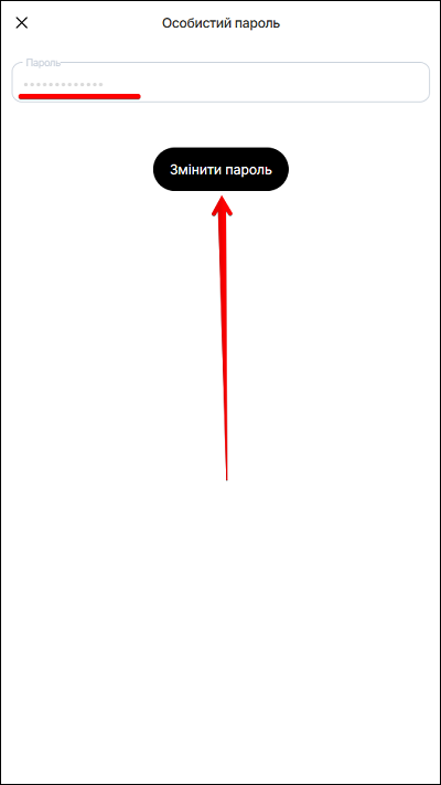 Введіть новий особистий пароль, та натисніть кнопку Змінити пароль.